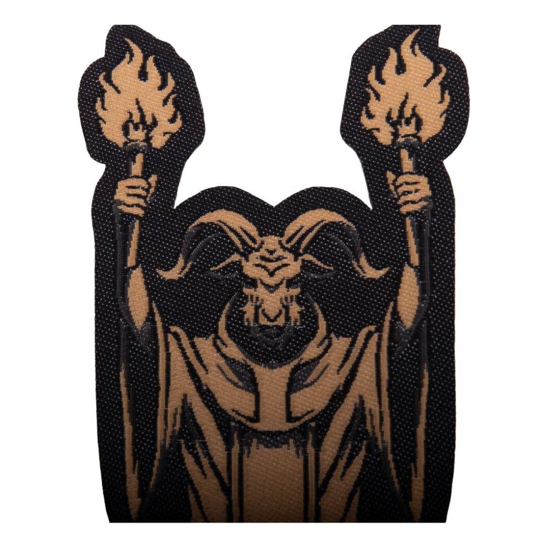 The Dante collection was inspired partially by the Inferno but also by death metal, and few things are more metal than a patch to add to your battle vest (or jacket, if you like sleeves)! This patch is a nice 4.375" tall x 2" wide rendition of the Sabbatic Goat figure from our Dance ov the Sabbath crew sock artwork.